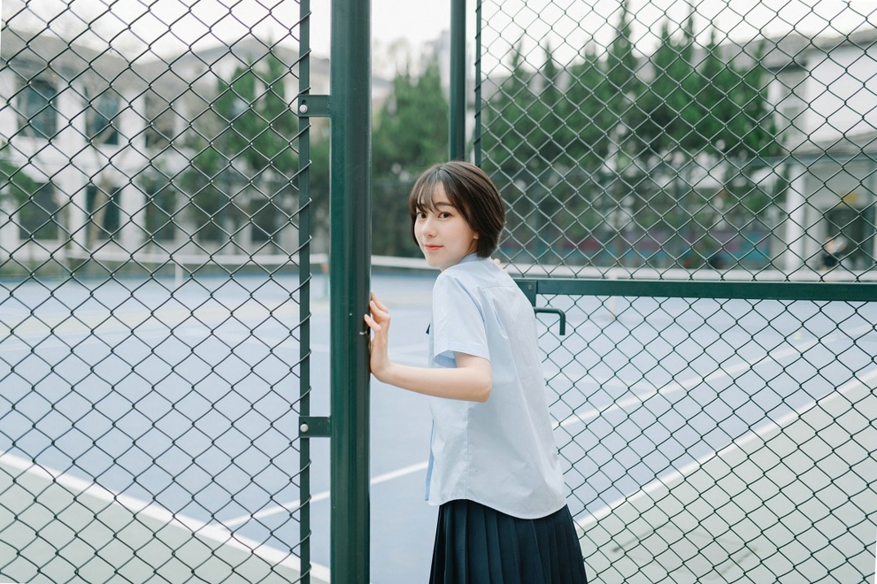 清新阳光皮肤白嫩短发清纯学生妹校园甜美俏皮活力唯美写真